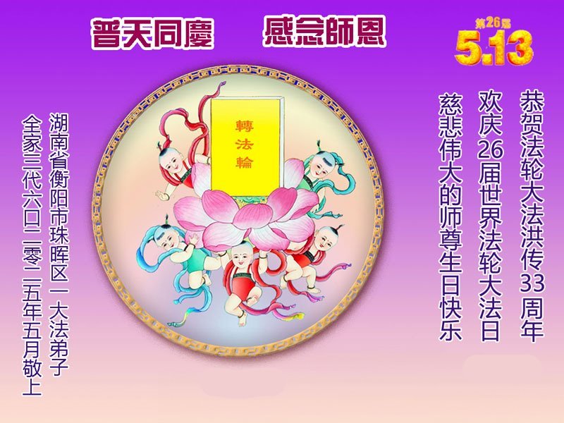 湖南省一大法弟子一家人恭賀世界法輪大法日!