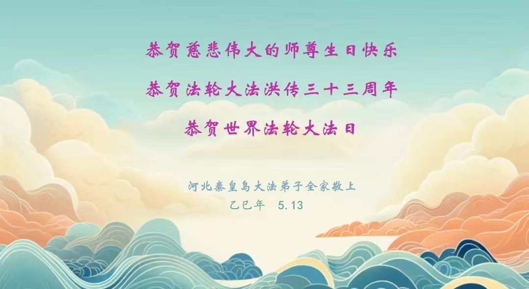慶賀五﹒一三世界法輪大法日!向慈悲偉大的師父問好!恭祝師父生日快樂!