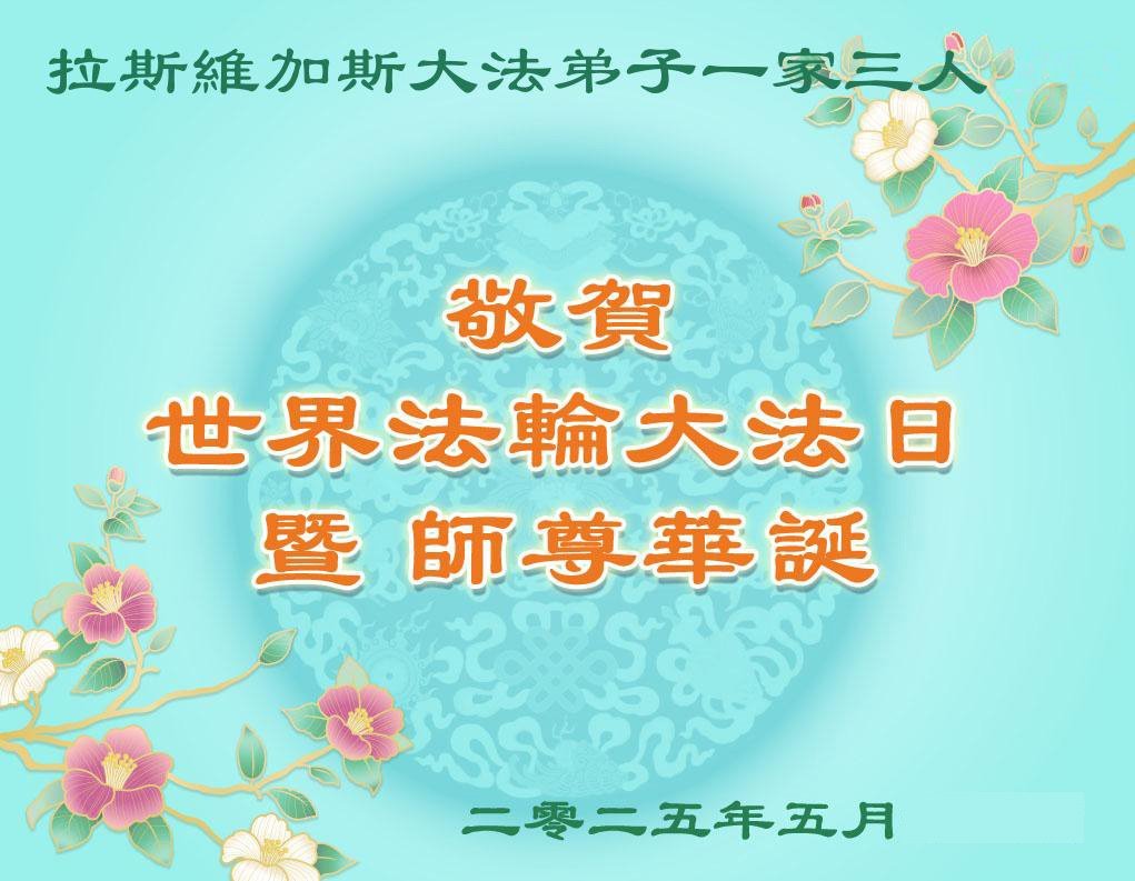 美國拉斯維加斯大法弟子一家三人敬賀