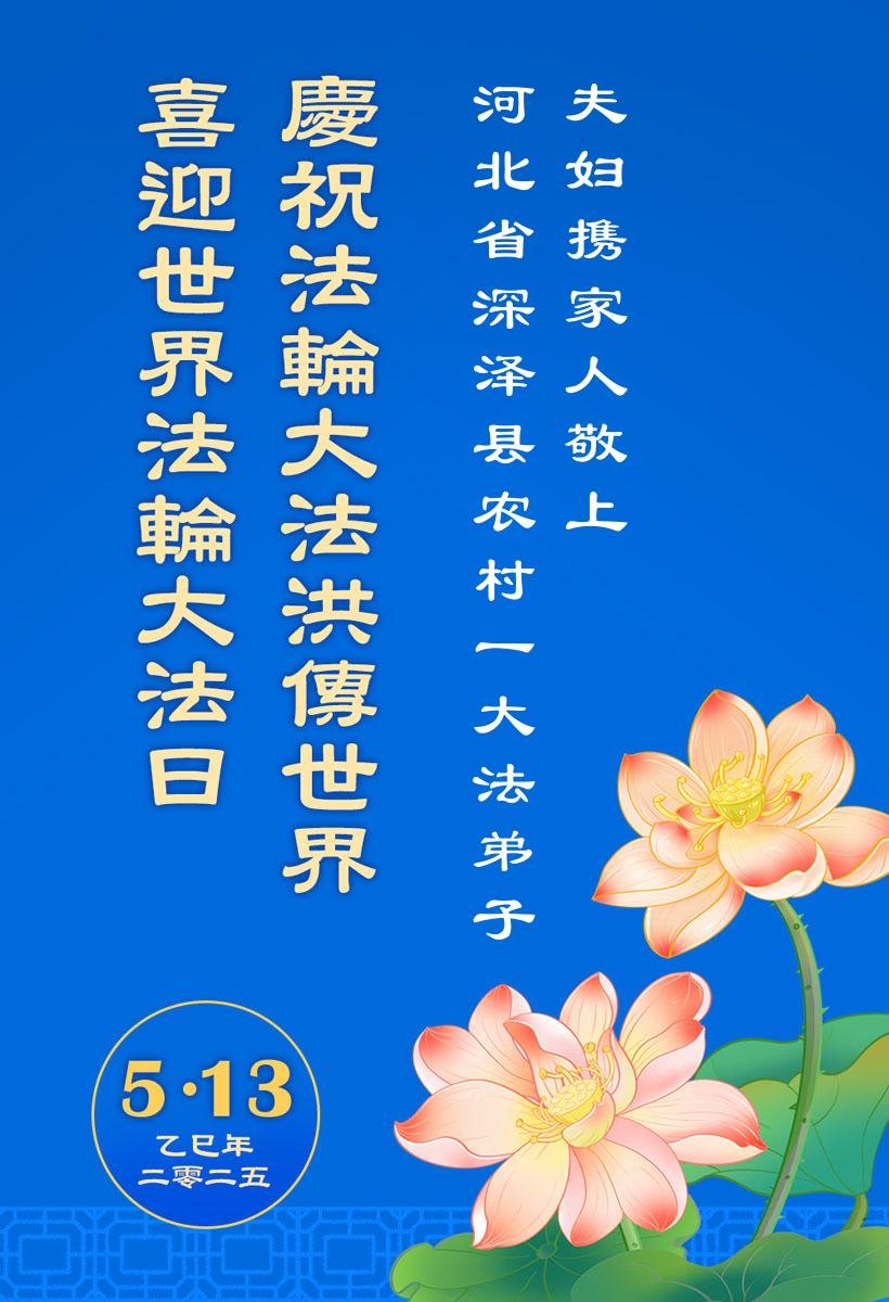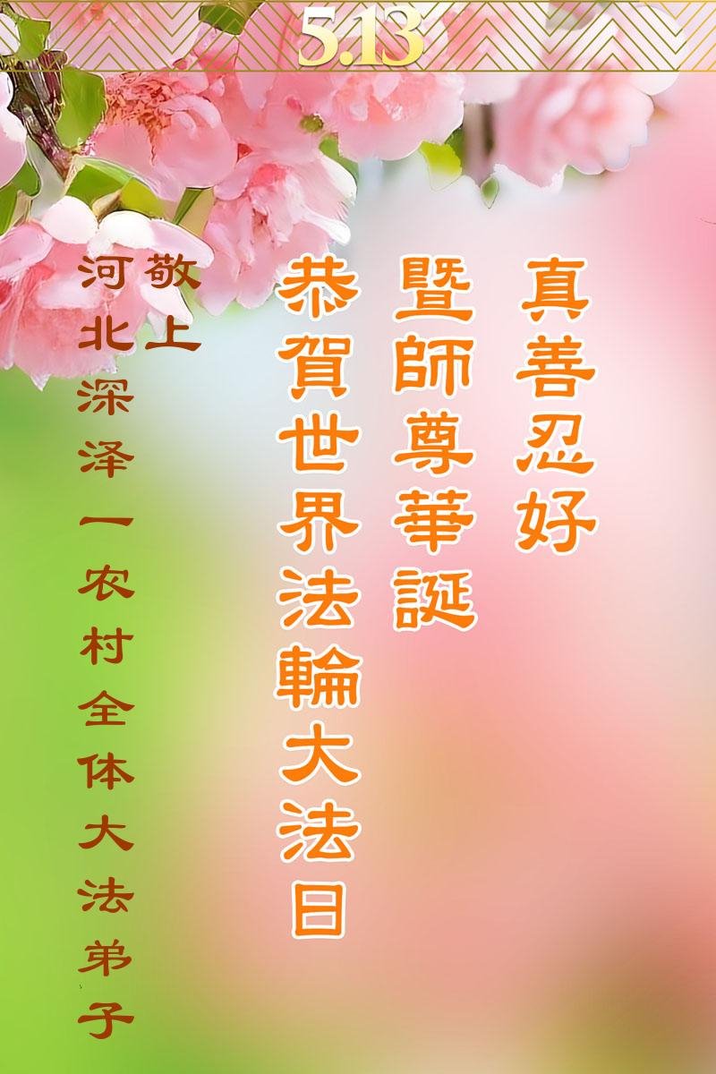 河北省農村大法弟子祝賀法輪大法洪傳世界三十三週年!恭祝慈悲的師父華誕!