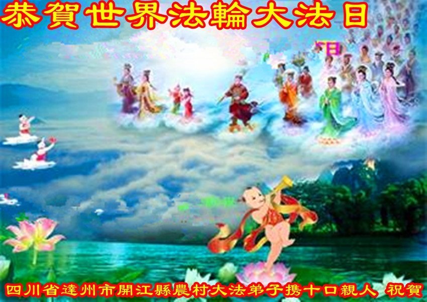 四川省達州市開江縣農村大法弟子攜十口親人恭賀世界法輪大法日!