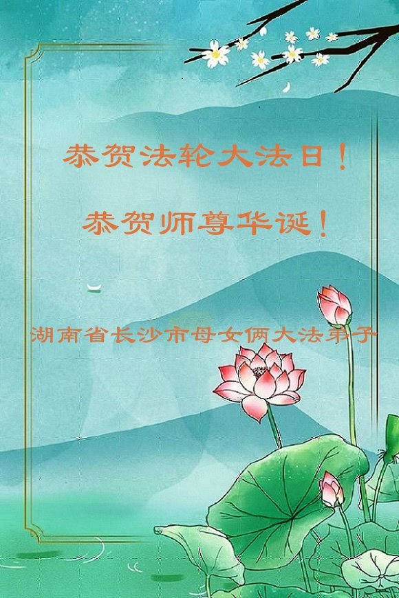 湖南省長沙市母女倆大法弟子恭賀世界法輪大法日!敬祝師尊華誕!