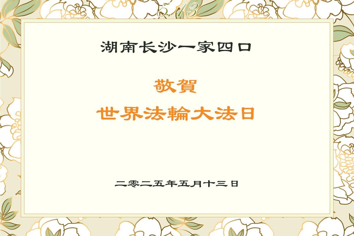湖南長沙市一家四名大法弟子暨家人恭賀世界法輪大法日!