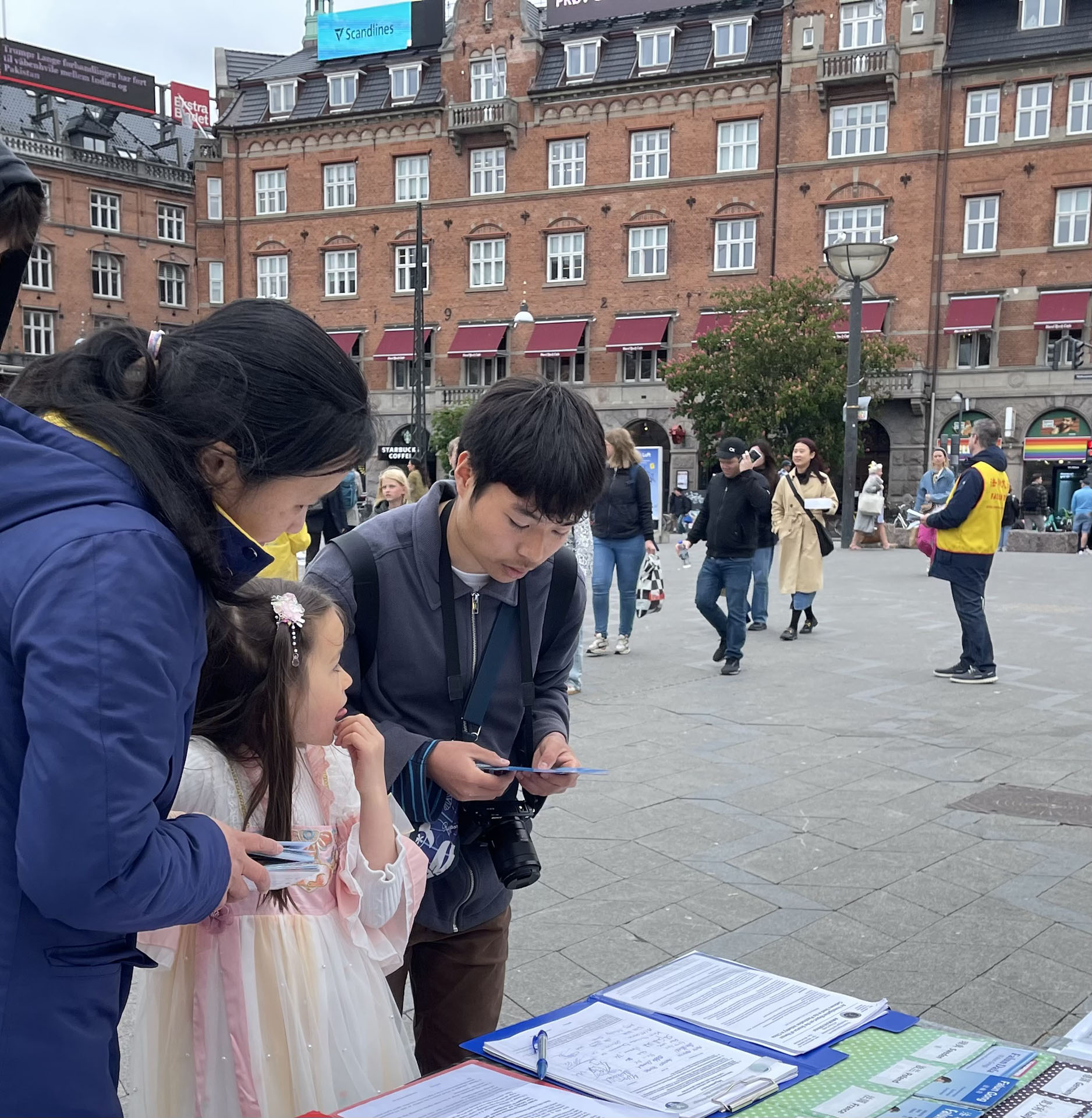 這麼大的雨,我看到有帶著孩子的媽媽,一邊帶著孩子一邊發真相資料和小蓮花;我看到有5、6位常人舉著橫幅,上面寫的「我們支持法輪功,三退保平安」。我當時微笑向他們招手示意,我的眼淚差點順著雨水落下來。是啊,一方面我體會到國內外大法弟子是一個整體,共同努力勸三退、講真相,另一方面我體會到世人也在迅速的覺醒,中共的謊言就像紙包不住火,真相不會永遠被掩蓋,遲早會有撥雲見日的那一天。