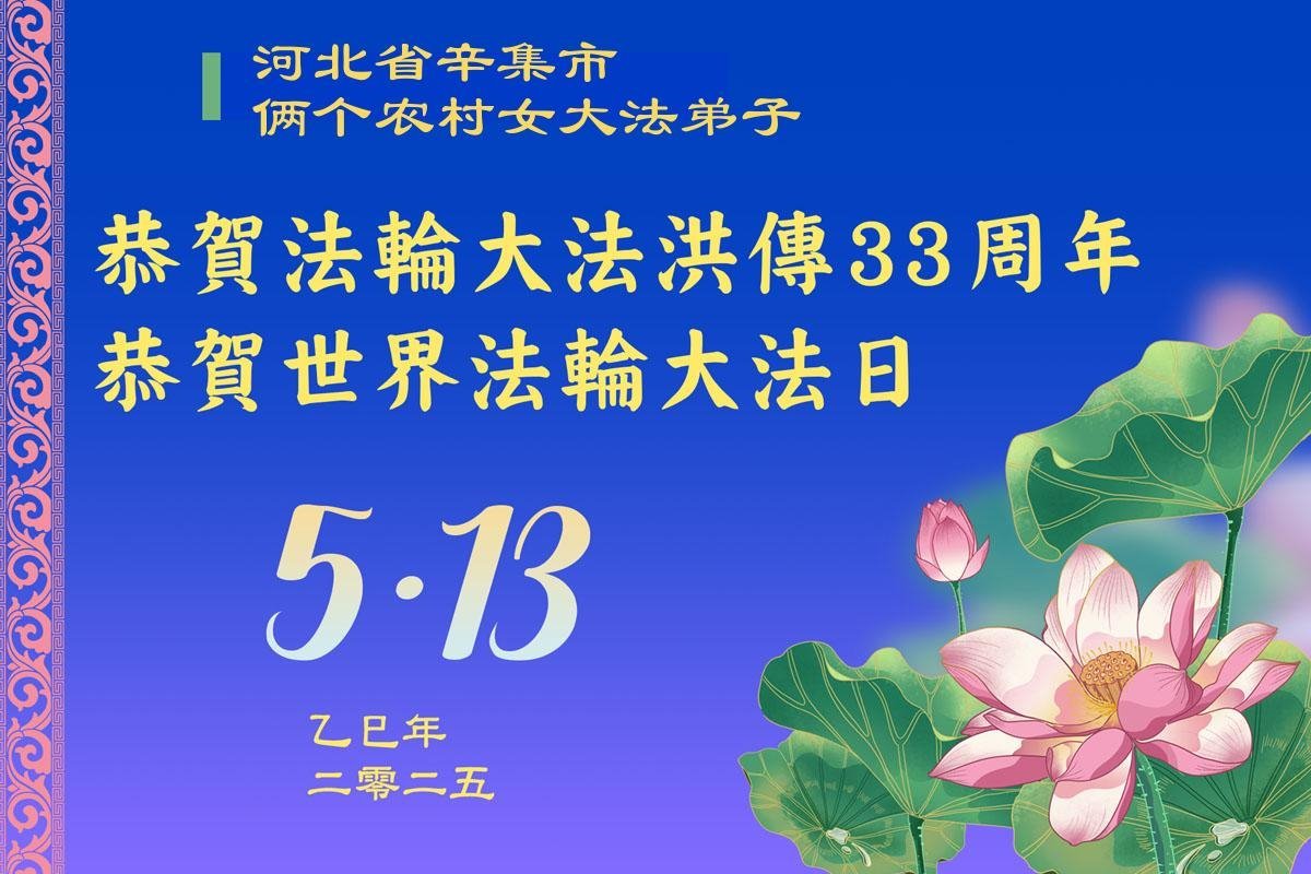 河北省石家莊市辛集市兩個農村女大法弟子敬上
