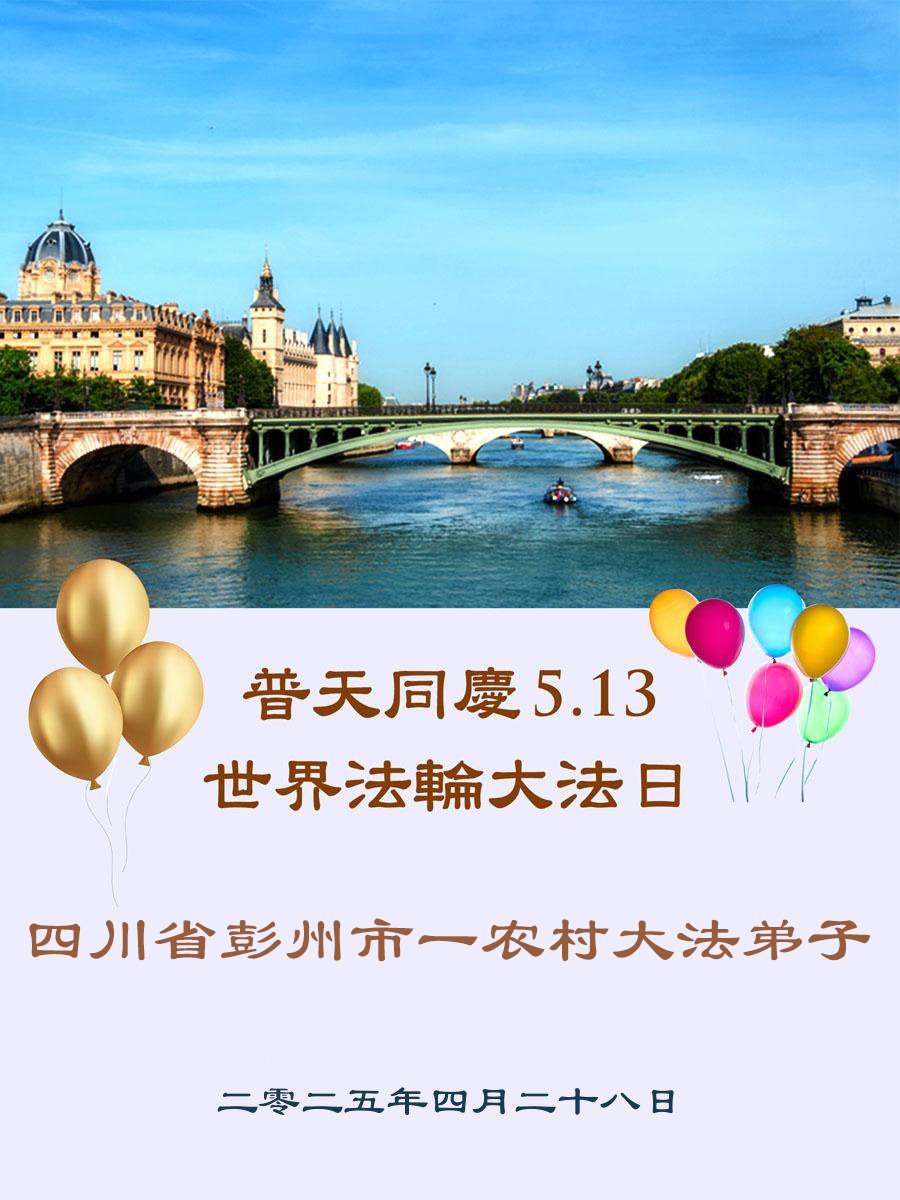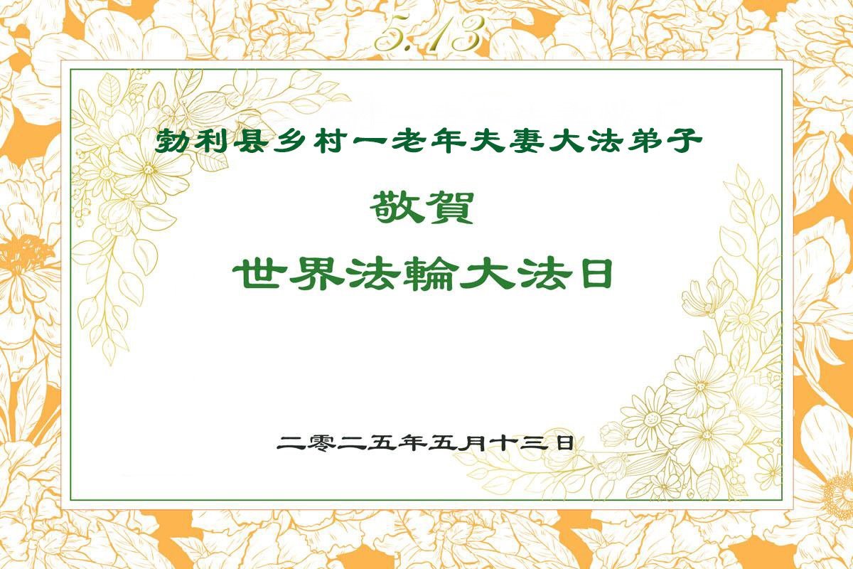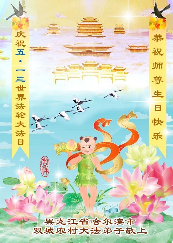 在這普天同慶的日子裏,我們農村大法弟子懷著無比感恩之心,慶賀第二十六屆世界法輪大法日!歡慶法輪大法洪傳世界三十三週年!歡慶5.13這神聖而偉大的日子!