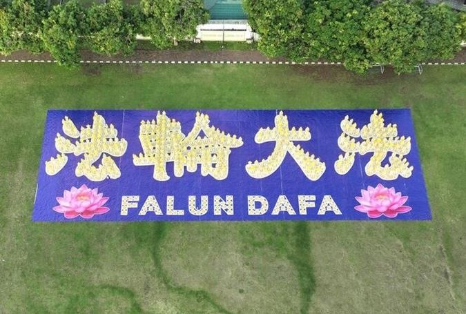 ![]() 圖2:學員們排出「法輪大法」四個漢字 |