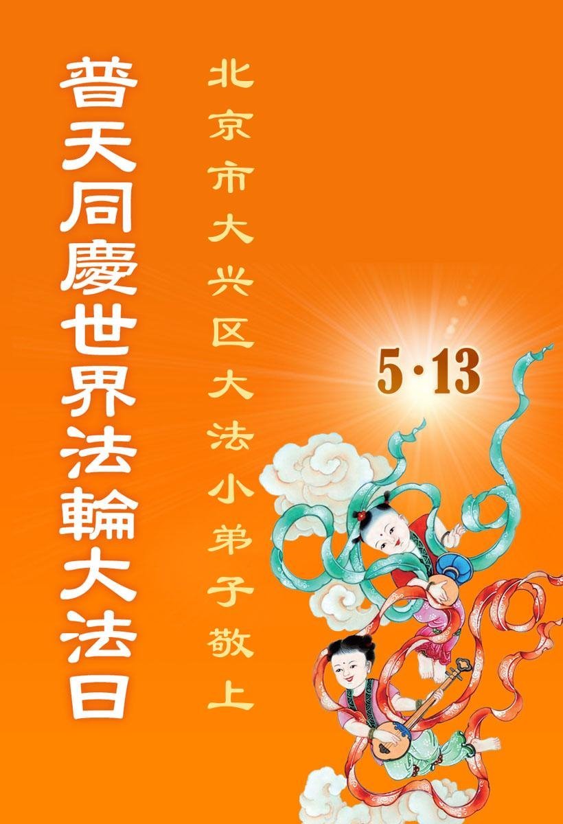 北京市大興區大法小弟子慶祝世界法輪大法日!