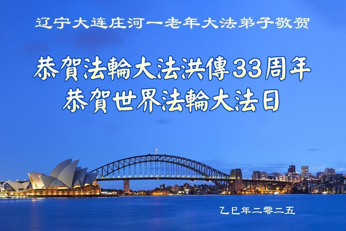 遼寧省大連市莊河市一老年大法弟子恭賀世界法輪大法日暨師父生日快樂!