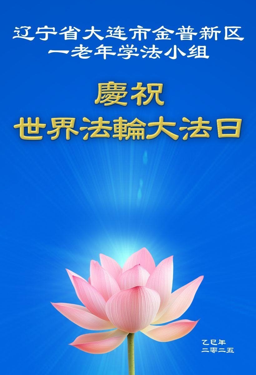 遼寧省大連市金普新區一老年學法小組大法弟子恭祝世界法輪大法日!