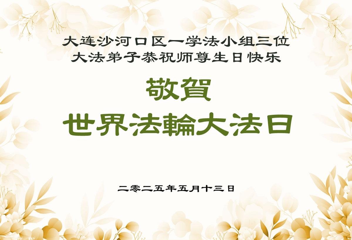 遼寧省大連大法弟子恭祝世界法輪大法日!恭祝師尊華誕!