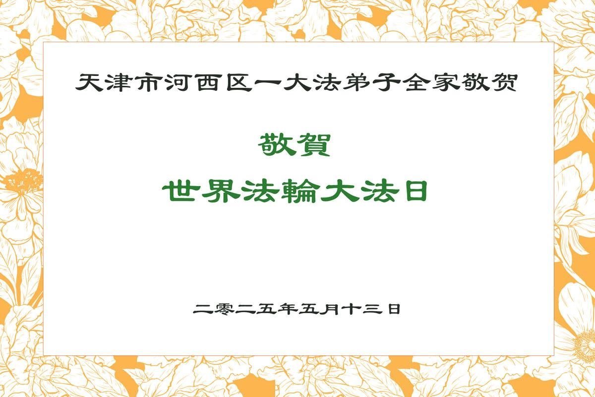 天津市西青區一大法學員恭祝師尊華誕和世界法輪大法日!
