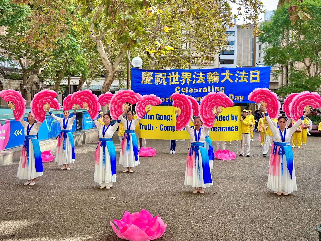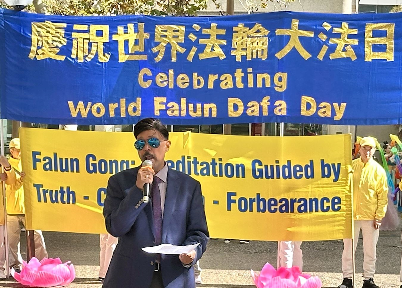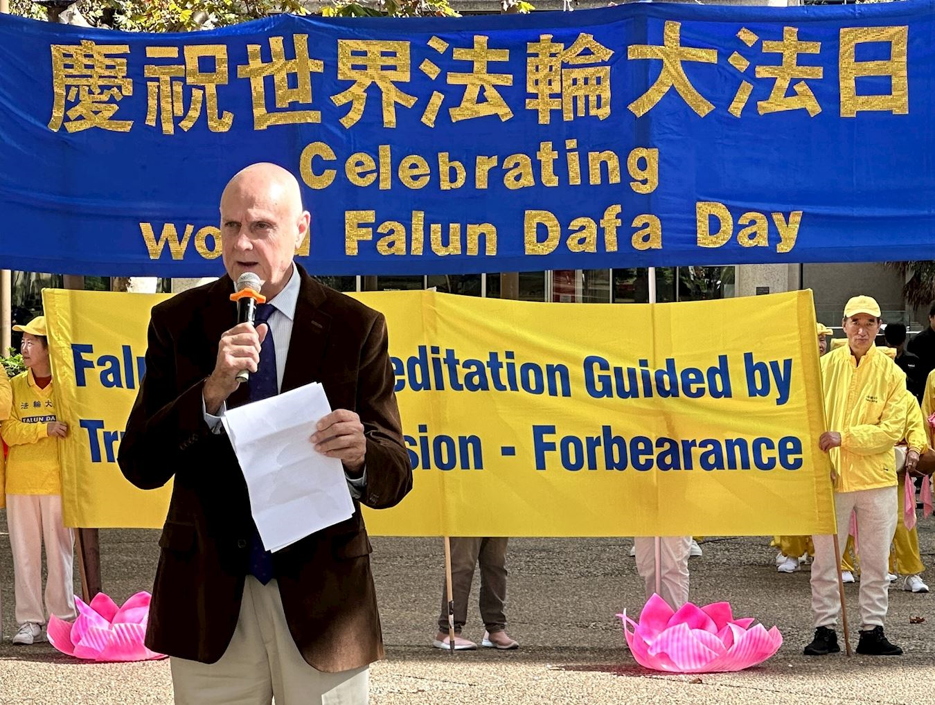 澳洲法輪大法學會發言人戴勒(John Deller)表示:「今天,我們慶祝一個特殊的日子──一九九二年五月十三日,李洪志大師首次將法輪大法的偉大法理和真、善、忍原理傳授公眾。截至一九九九年,在中國,已有7000多萬人修煉。如今,法輪大法已弘傳全球100多個國家,法輪大法書籍已被翻譯成50種文字。