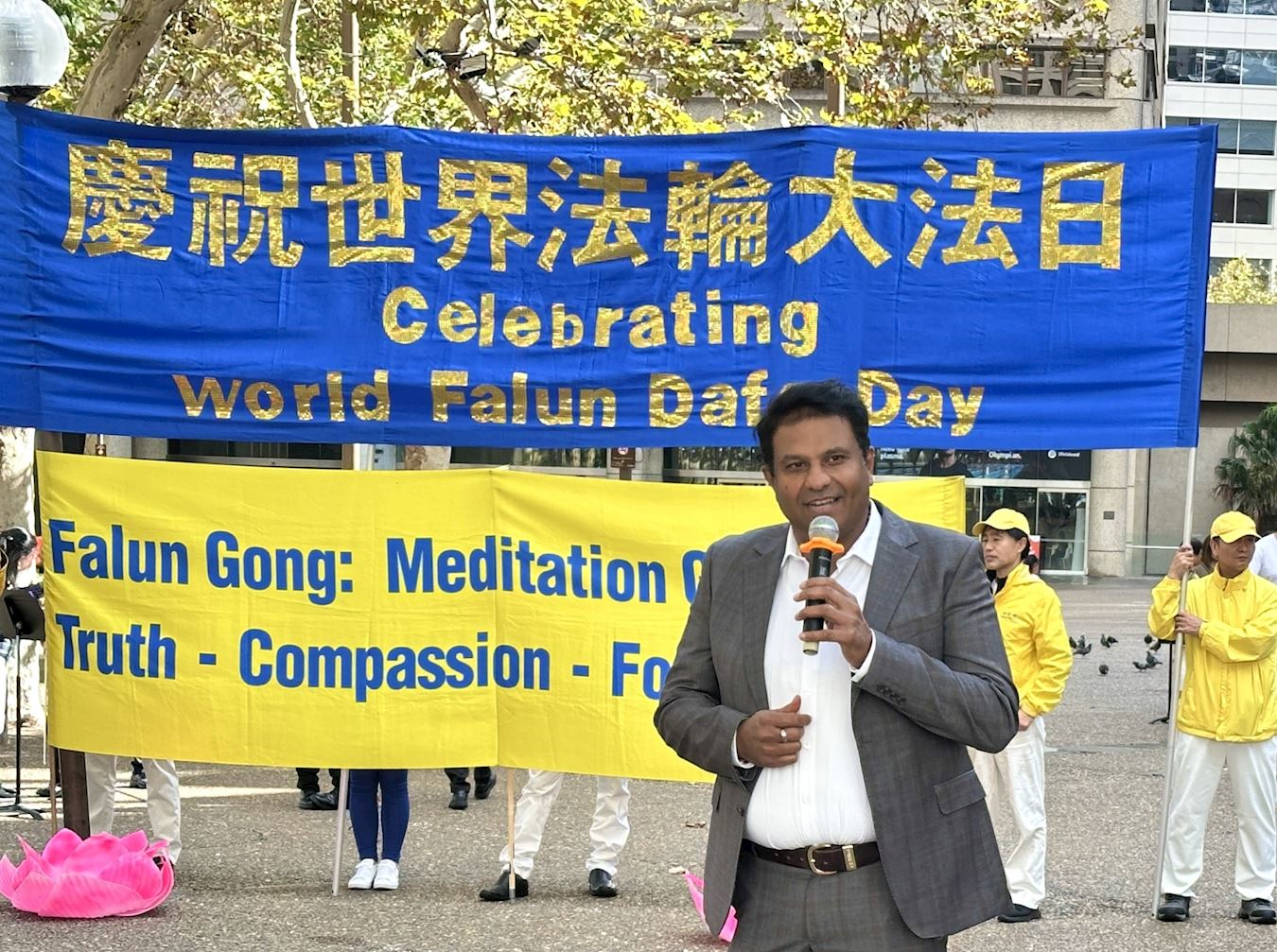 「我認為法輪大法的理念歡慶、冥想、慈悲、與其他社團友善相處。我認為這正是法輪大法在當前這個時刻為社區帶來巨大意義的原因。所以我很感謝(法輪功)整個團隊以及所有發起人,包括創始人。」