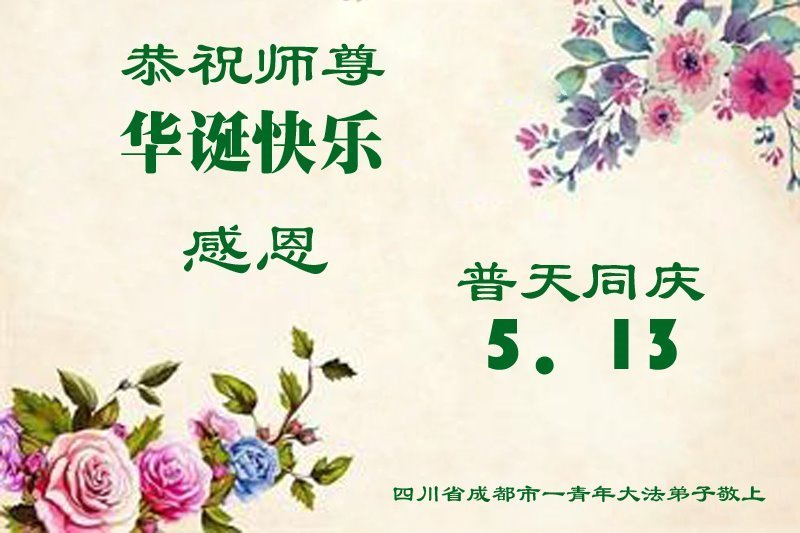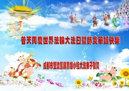尊敬的師父:在這普天同慶世界法輪大法日暨恩師光輝華誕之際,我們謹向您致以最崇高的敬意和最熱烈的祝賀!祝您生日快樂!願我們乘坐您開啟的渡船乘風破浪,勇猛向前,早日直達歸真的彼岸。