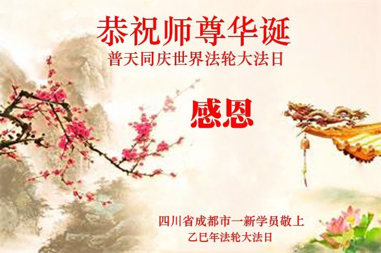 我是大陸剛剛得法的新學員,首先在五一三到來之際,向偉大的師尊祝願:祝師尊生日快樂!師尊您辛苦了!