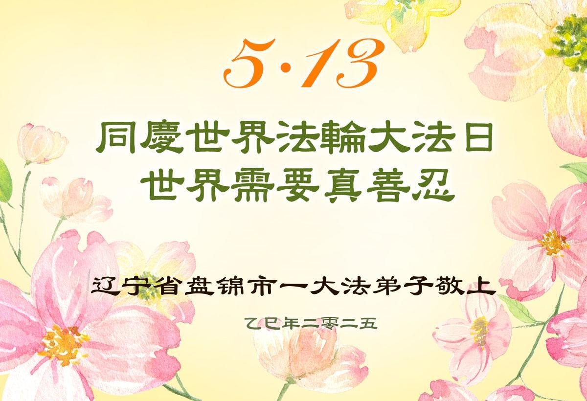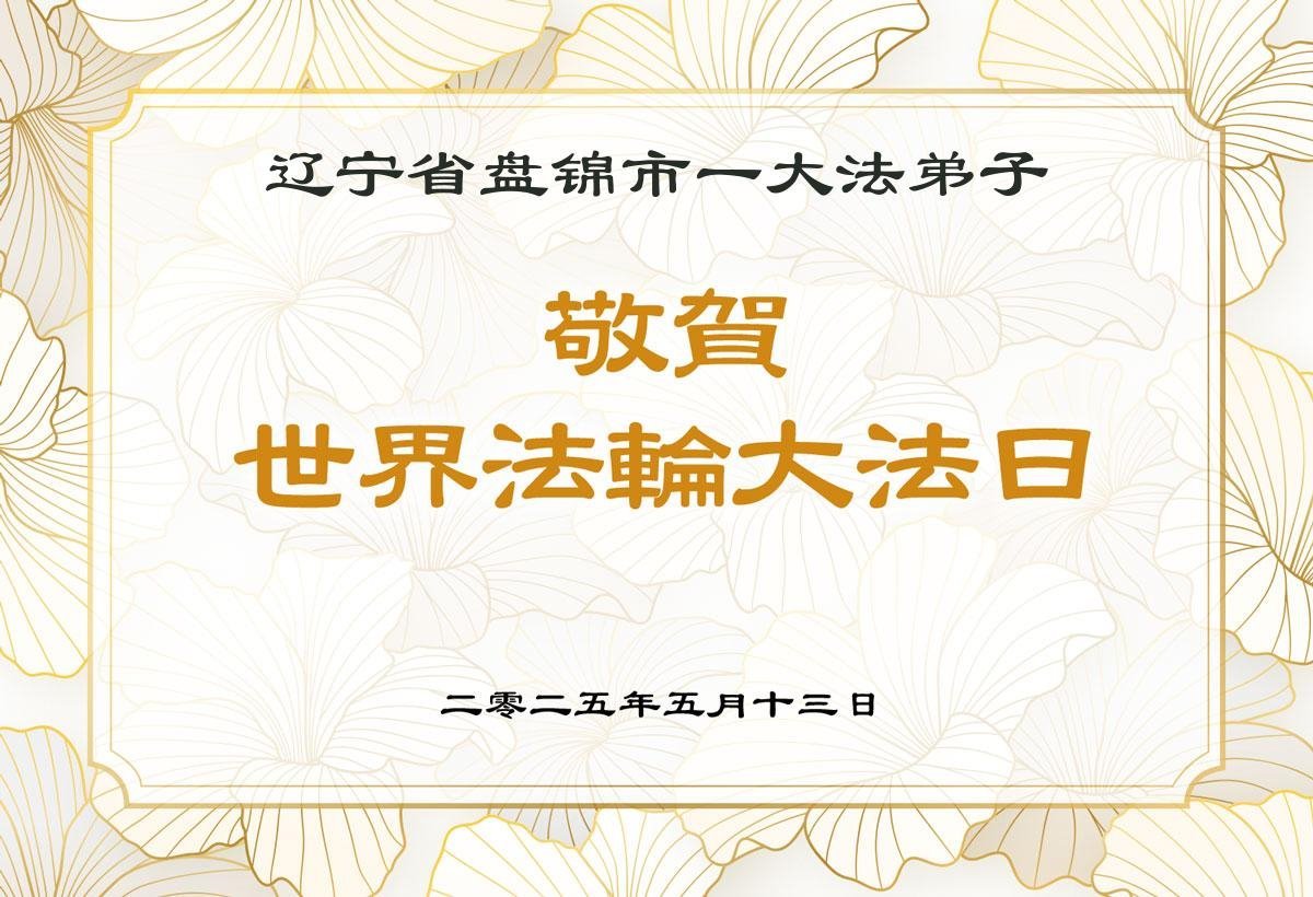 遼寧省盤錦市一大法弟子慶賀世界法輪大法日!恭祝師父生日快樂!