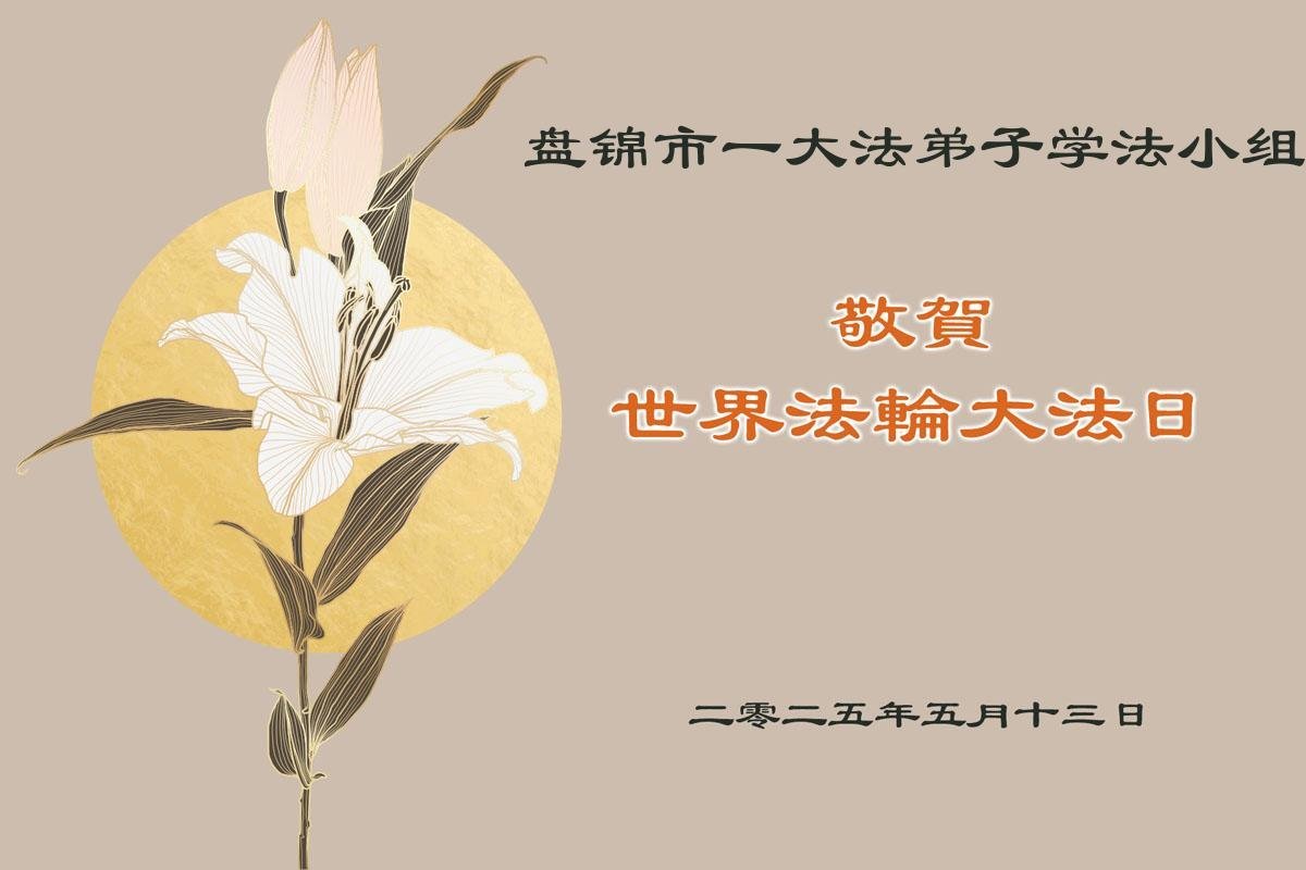 遼寧盤錦市一學法小組大法弟子恭賀世界法輪大法日暨師父生日快樂!