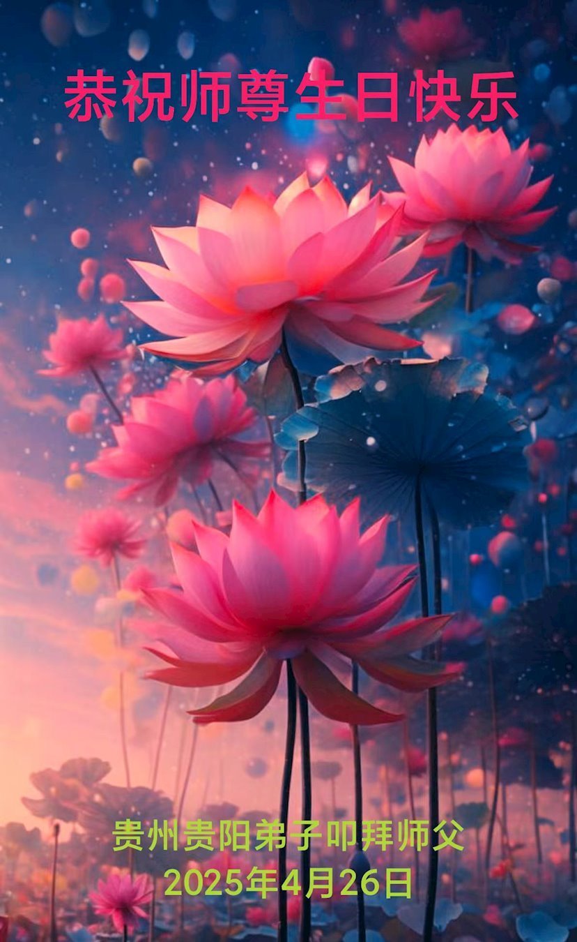 在這偉大的日子,弟子恭祝慈悲偉大的師尊快樂!弟子一定聽師尊的話,做好三件事,不辜負師尊的救度!