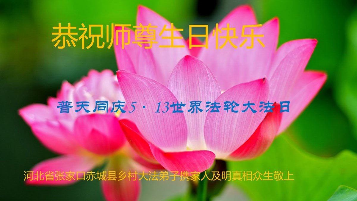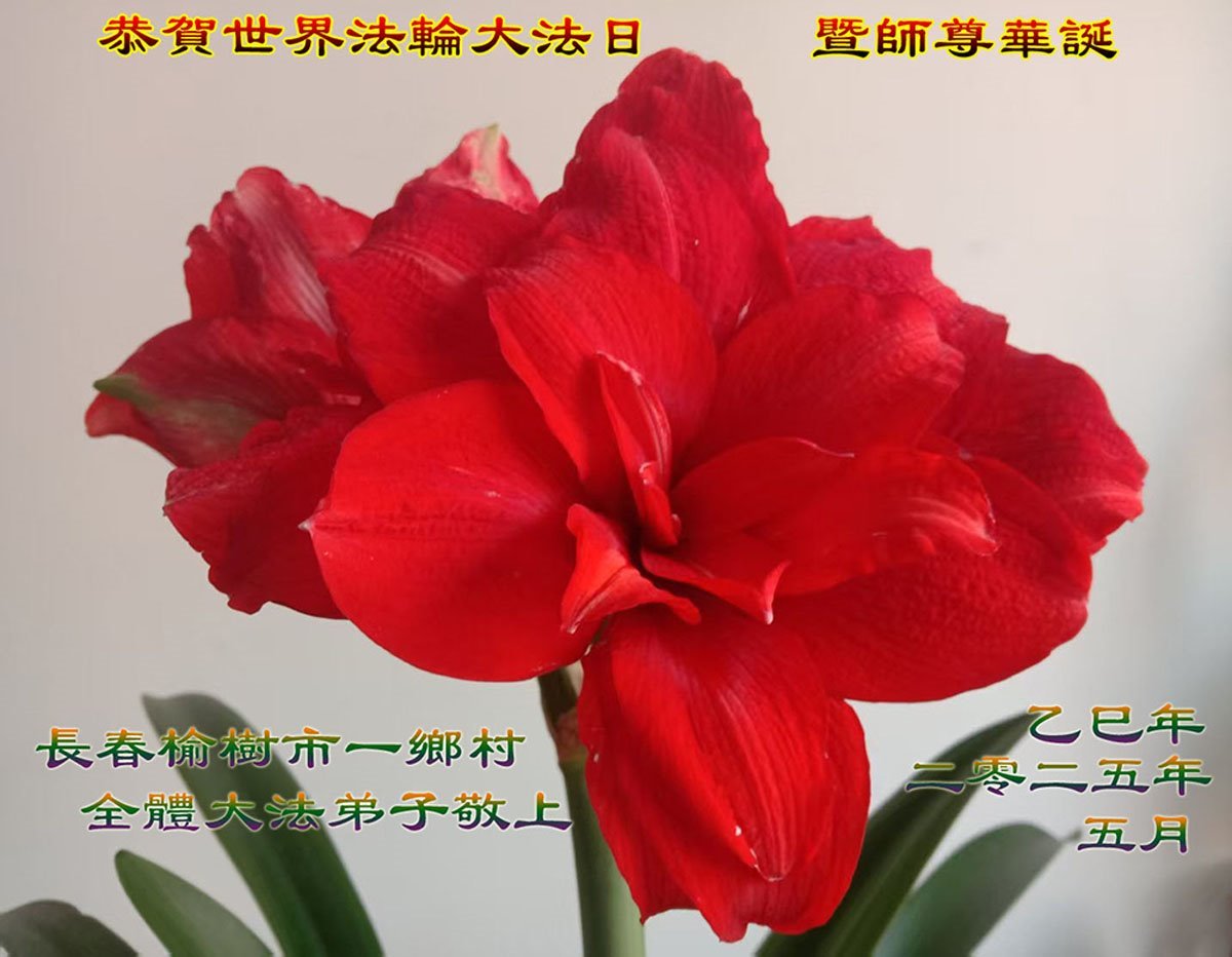 中國大陸一農村大法弟子恭賀世界法輪大法日!恭祝師父生日快樂!