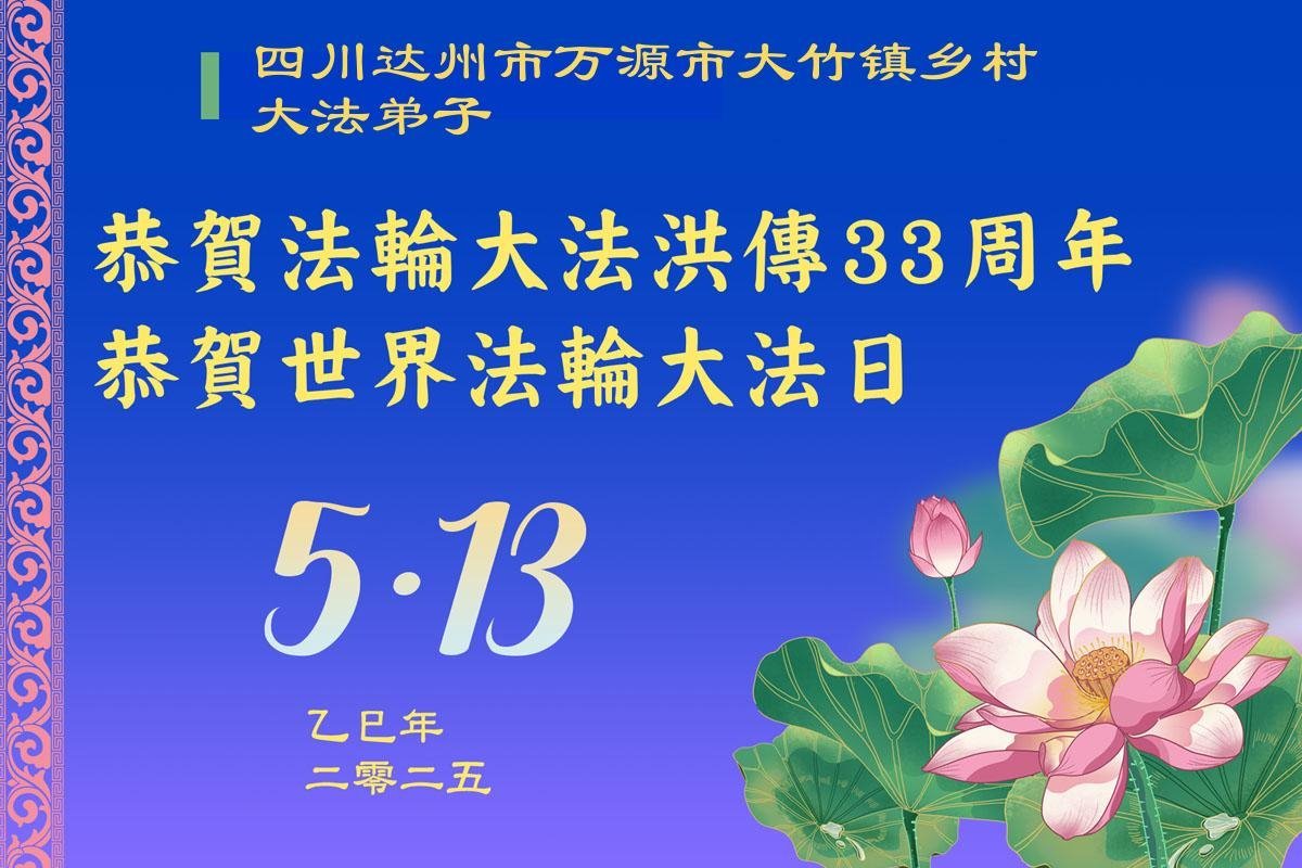 四川省自貢市一鄉鎮大法弟子恭賀世界法輪大法日!恭祝師尊生日快樂!