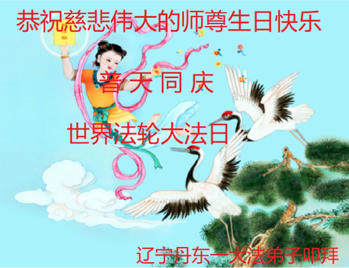 在法輪大法日到來之際,感恩師父讓我喜得大法,令我身心受益,家庭和睦。我是農村婦女,母親、姐姐們得法修煉二十八載,我一直是處於下士。但是在這二十八年中,我經歷了多次劫難,在師父的保護下,平安渡劫。我知道師父就在我身邊,有放不下的執著時,師父就點化我,我就會按照師父的法對照自己,放下各種人心和慾望。我從內心深深的感謝師父!今後我一定要抓緊時間多學法領悟法理,勇猛精進,堅定的真修實修大法,做一名上士。祝師父生日快樂!