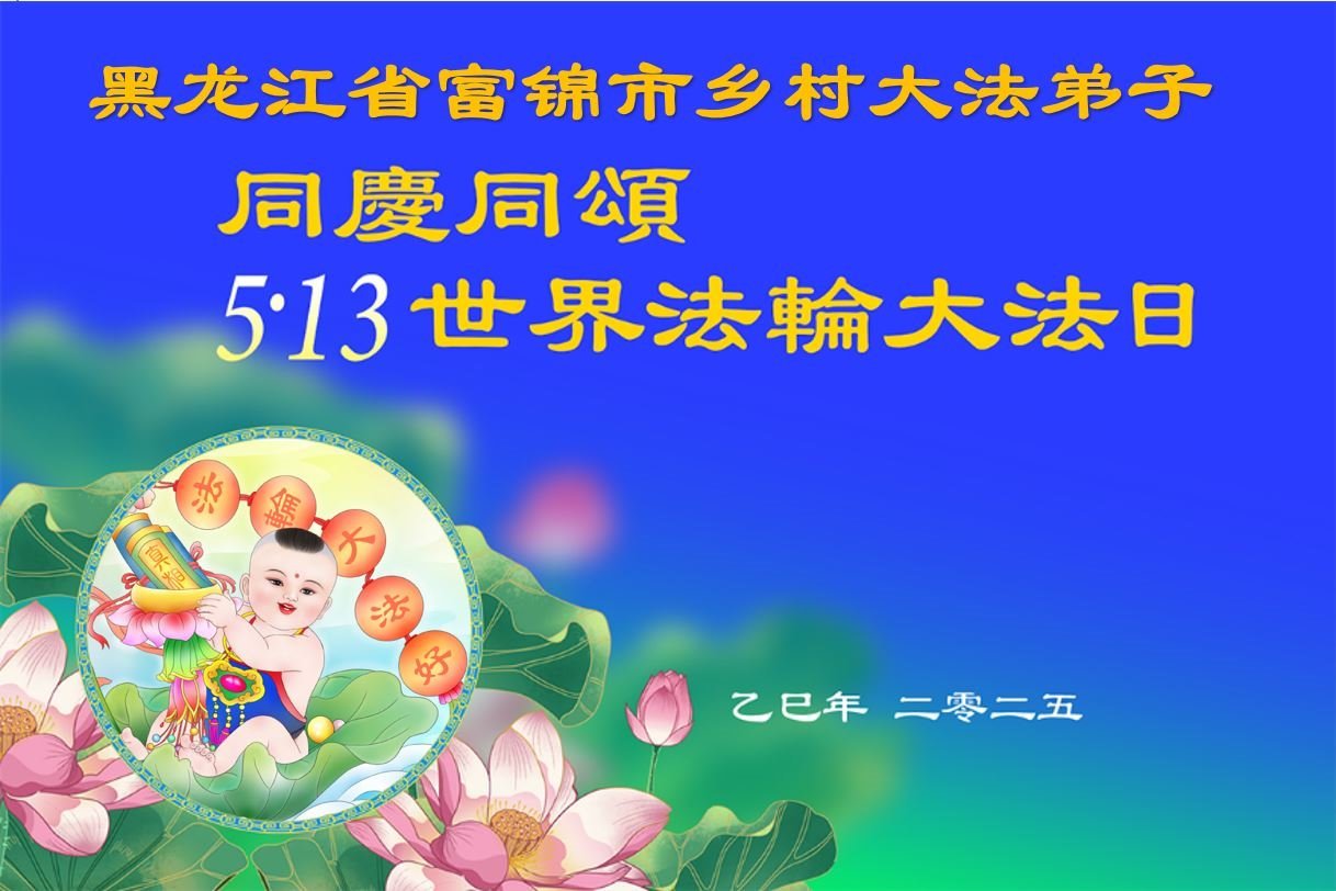 黑龍江省佳木斯富錦市鄉村大法弟子同慶同頌5.13世界法輪大法日!