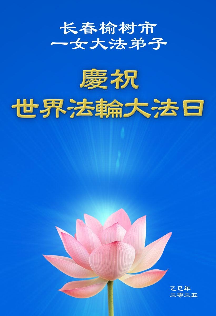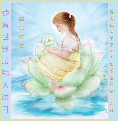 在普天同慶世界法輪大法日之際,我們婆媳兩位大法弟子感恩師父慈悲苦度,弟子們沐浴在師父浩蕩慈悲下,感恩師父為弟子們承受太多,弟子一定真修實修,解體邪惡在同修間製造的間隔,向內找提高心性,形成整體,解體清除法難,圓滿跟隨師父回家。再一次恭賀法輪大法日!