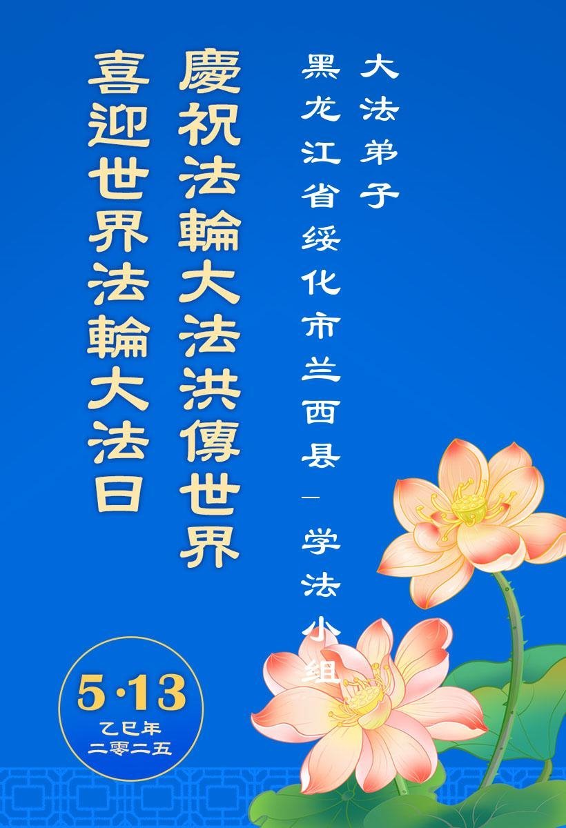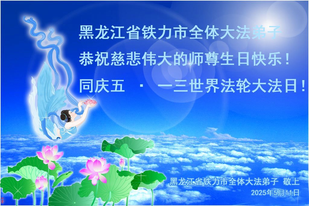 黑龍江省鐵力市全體大法弟子恭祝慈悲偉大的師尊生日快樂!同慶五﹒ 一三世界法輪大法日!