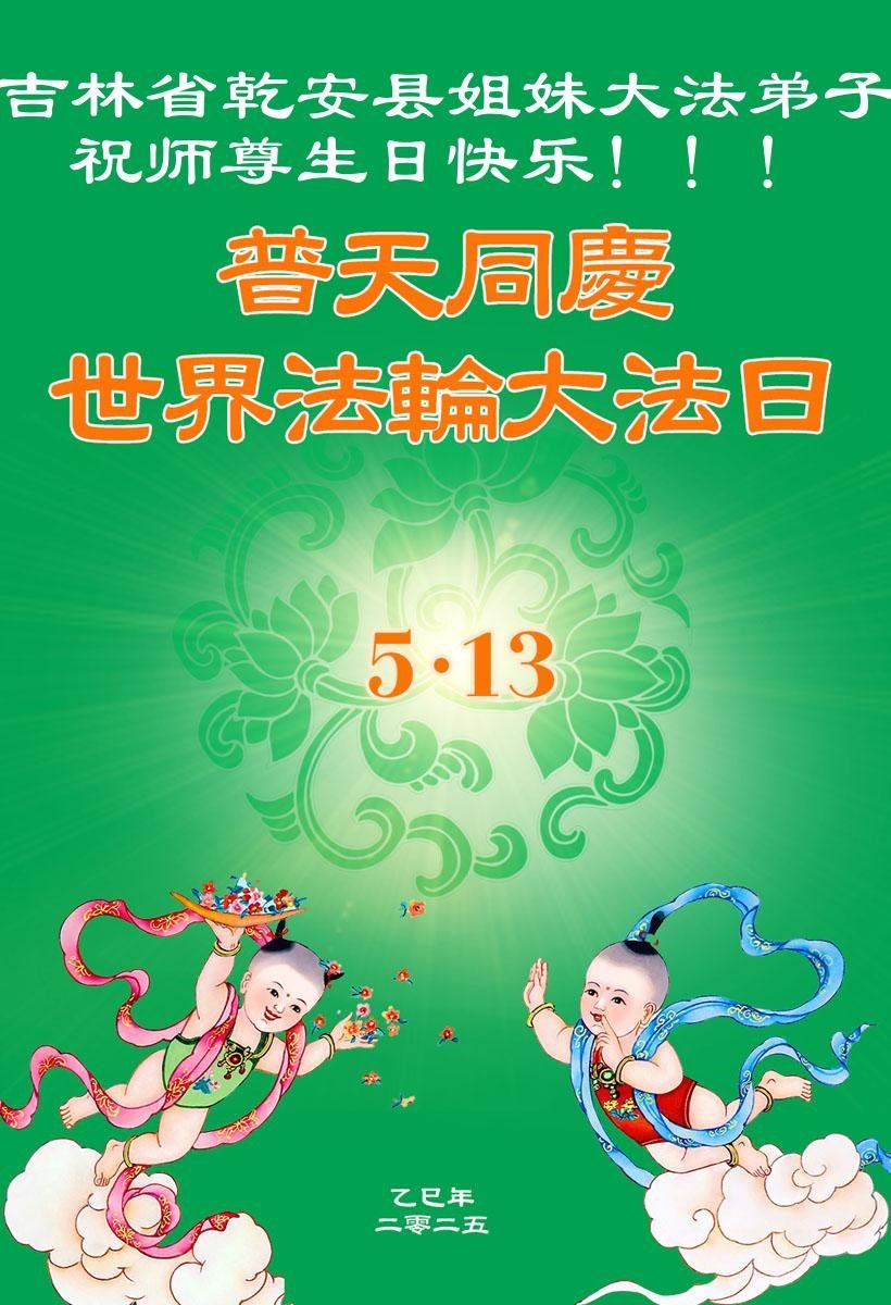 吉林省松原市乾安縣母女大法弟子恭祝師尊生日快樂!普天同慶世界法輪大法日!