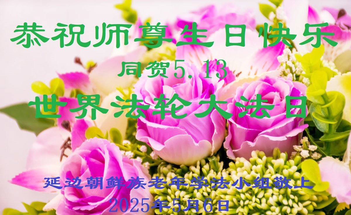 吉林省延邊朝鮮族4個學法小組大法弟子恭祝師尊華誕暨法輪大法日!
