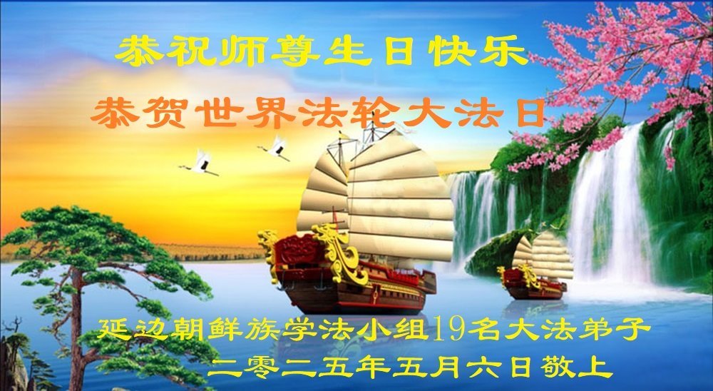 吉林省延邊朝鮮族學法小組大法弟子恭祝師尊華誕暨世界法輪大法日!