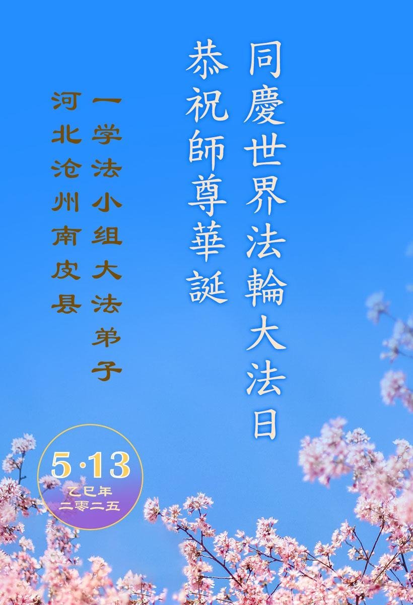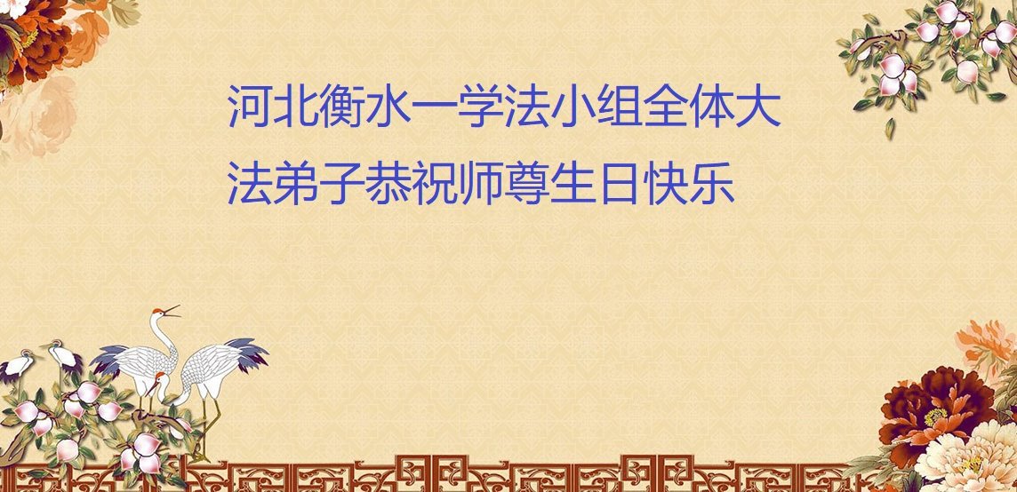 河北省衡水市桃城區一學法小組全體大法弟子恭賀世界法輪大法日暨師尊生日快樂!