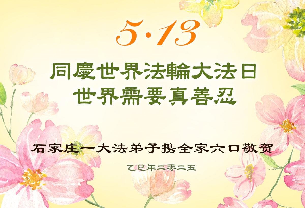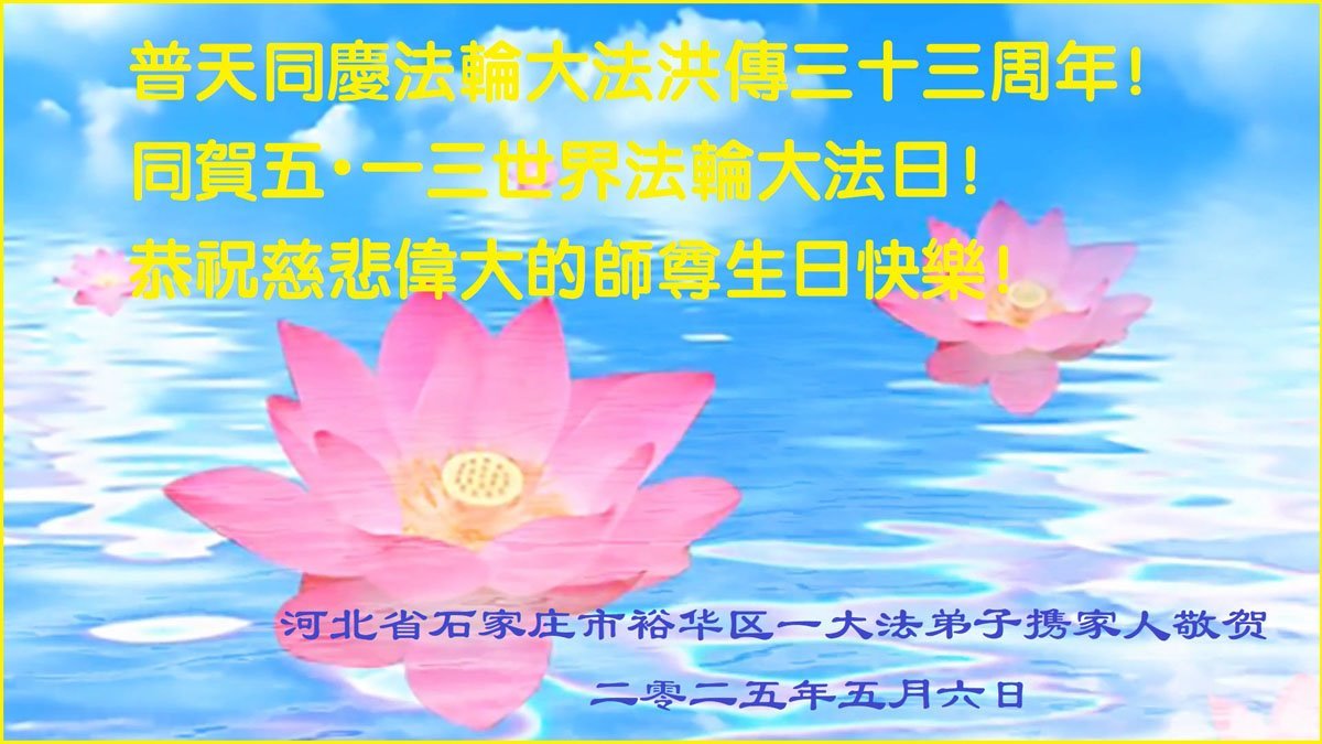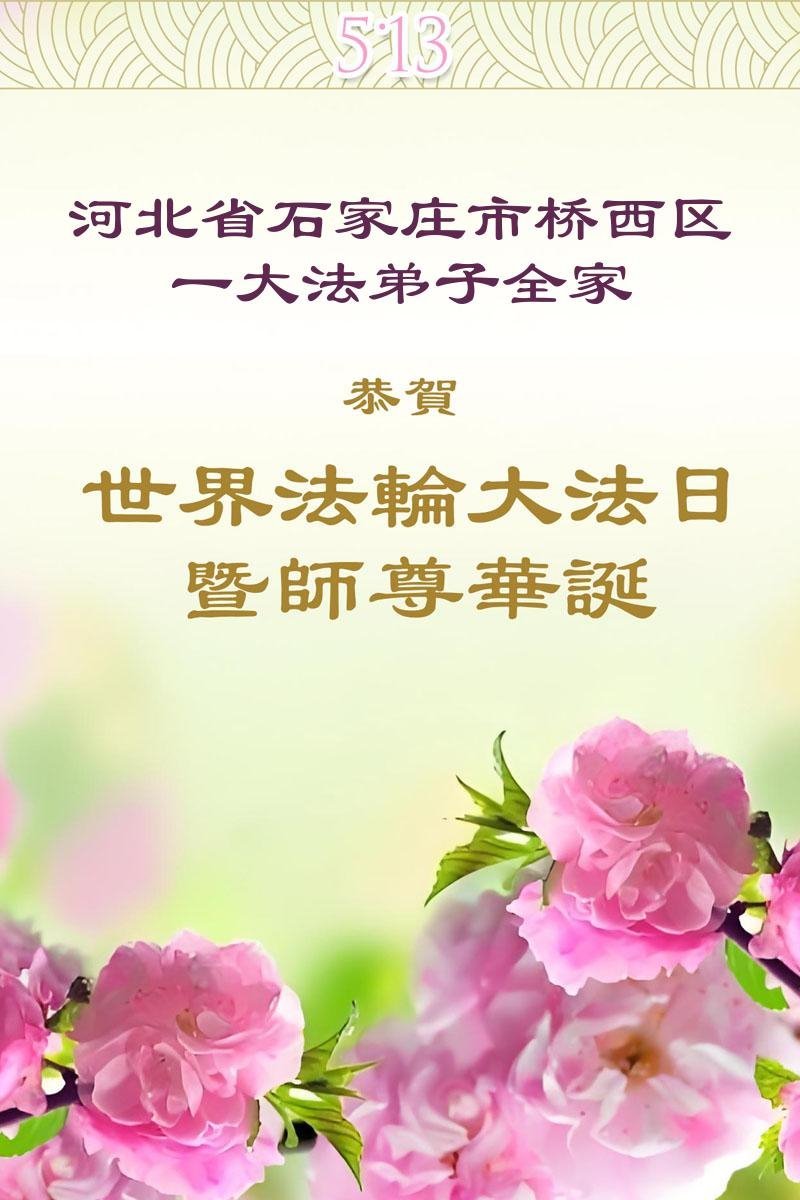 河北省石家莊市橋西區一大法弟子全家恭賀世界法輪大法日!感恩師尊慈悲救度!