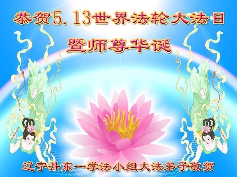 遼寧省丹東市一學法小組大法弟子恭賀世界法輪大法日!
