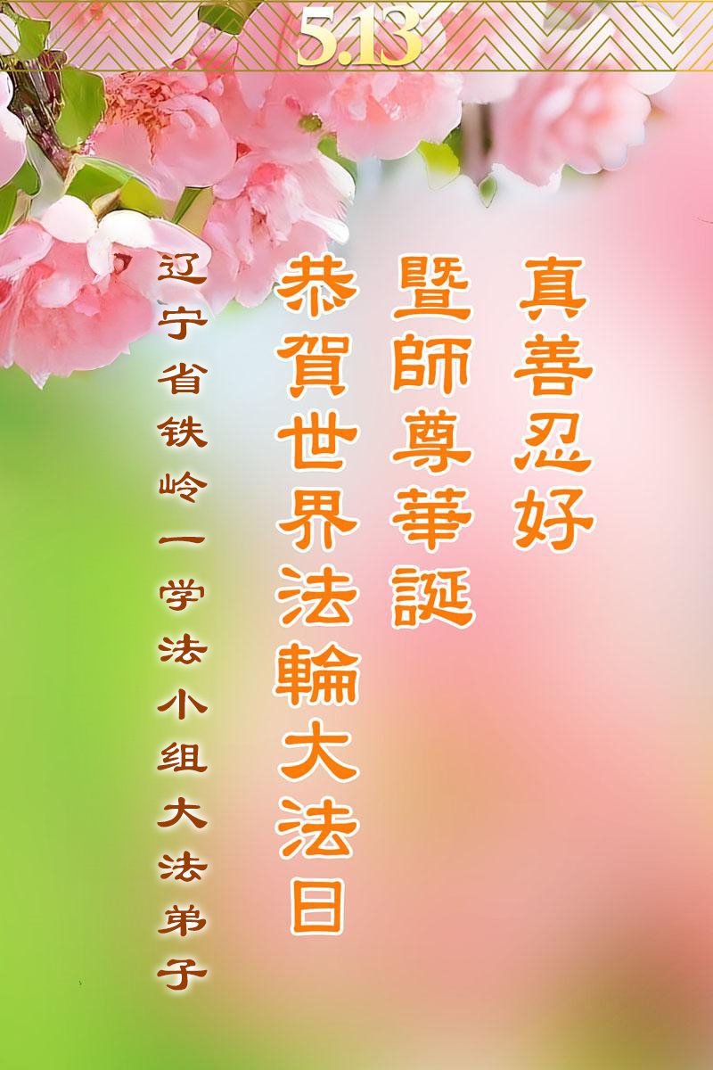 遼寧省鐵嶺市一學法小組大法弟子恭賀世界法輪大法日!敬祝慈悲偉大的師尊生日快樂!