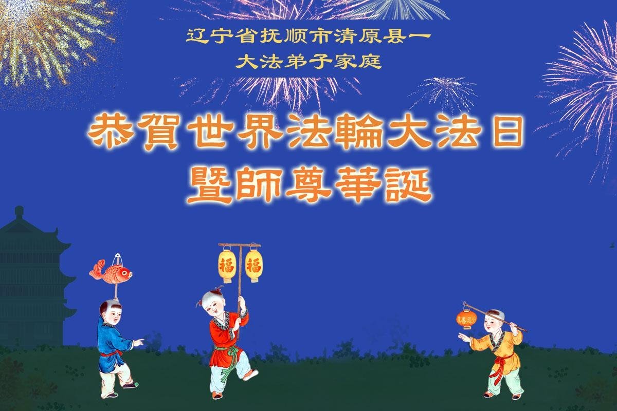 遼寧省撫順市清原縣一大法弟子家庭恭賀世界法輪大法日!敬祝師尊華誕!