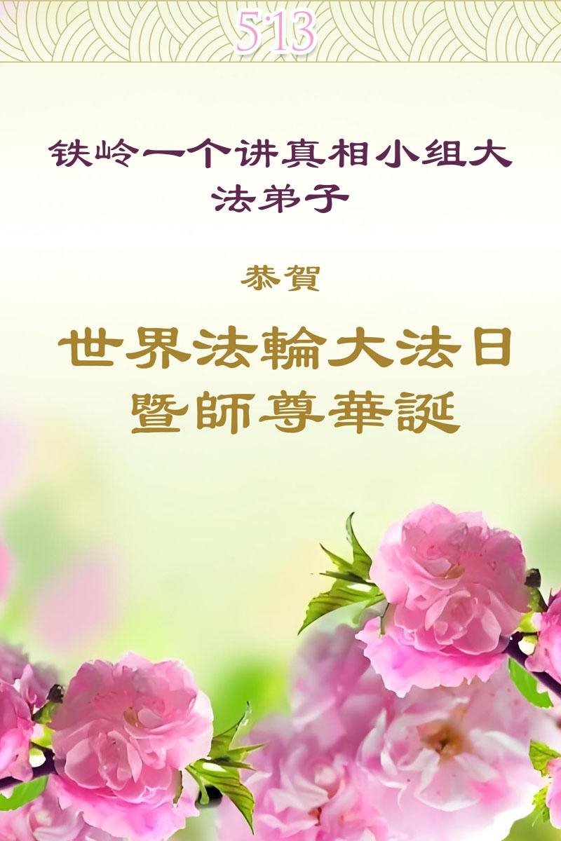 遼寧省鐵嶺市一個講真相小組大法弟子恭賀世界法輪大法日!恭祝師父生日快樂!