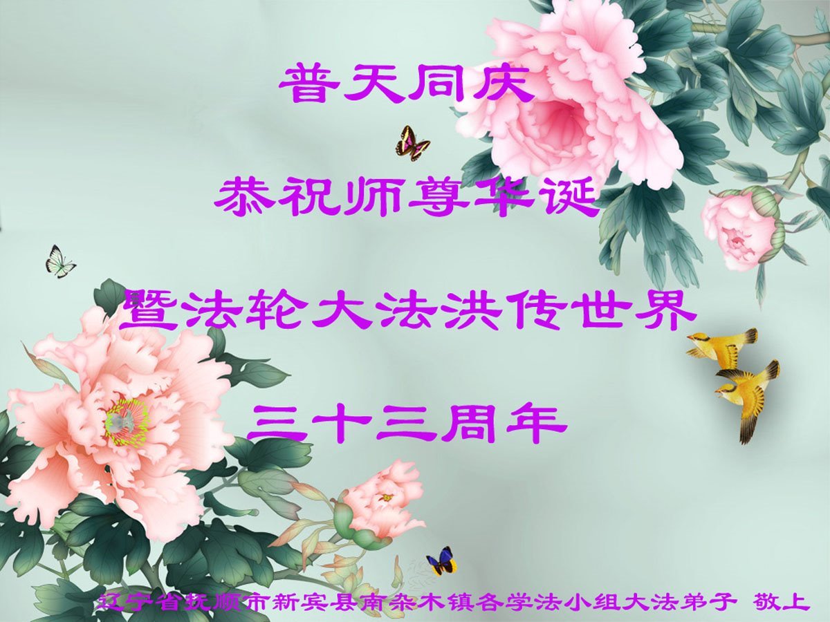 遼寧省撫順新賓姐妹大法弟子恭賀世界法輪大法日!敬祝師尊華誕!