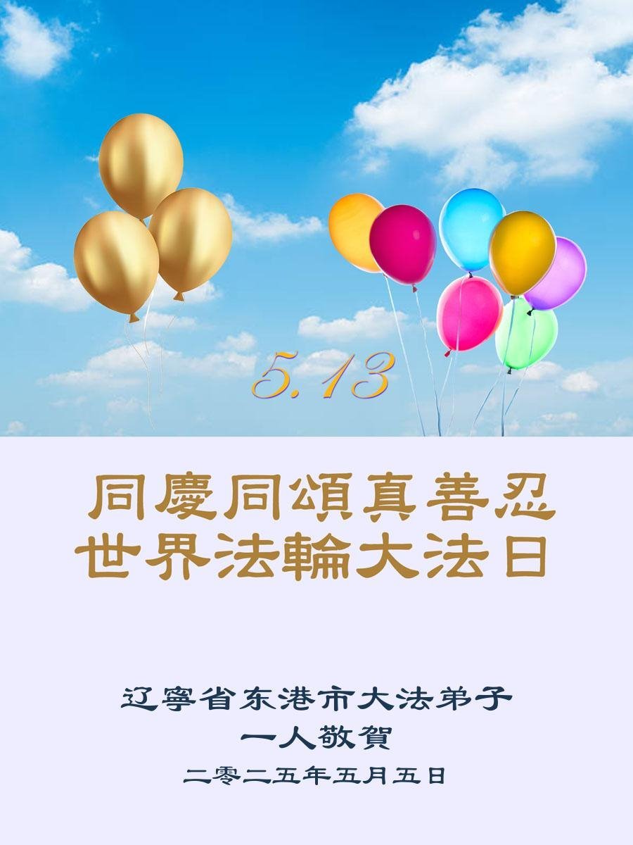 遼寧省丹東市東港市一大法弟子恭賀世界法輪大法日!