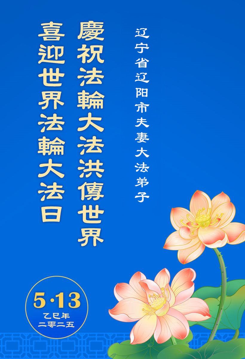遼寧省遼陽市夫妻大法弟子慶賀世界法輪大法日!恭祝師父生日快樂!