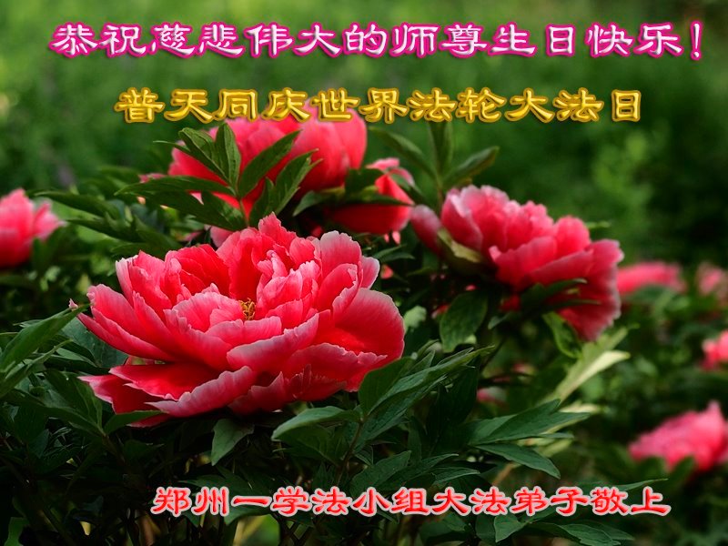 河南省鄭州市大法弟子恭祝慈悲偉大的師尊生日快樂!