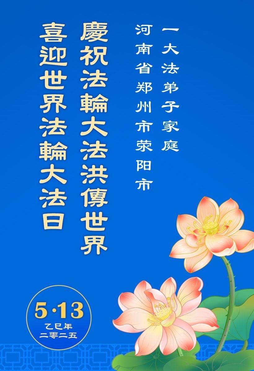 河南省鄭州市滎陽市一大法弟子家庭敬上