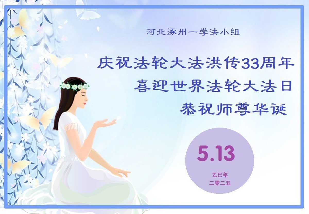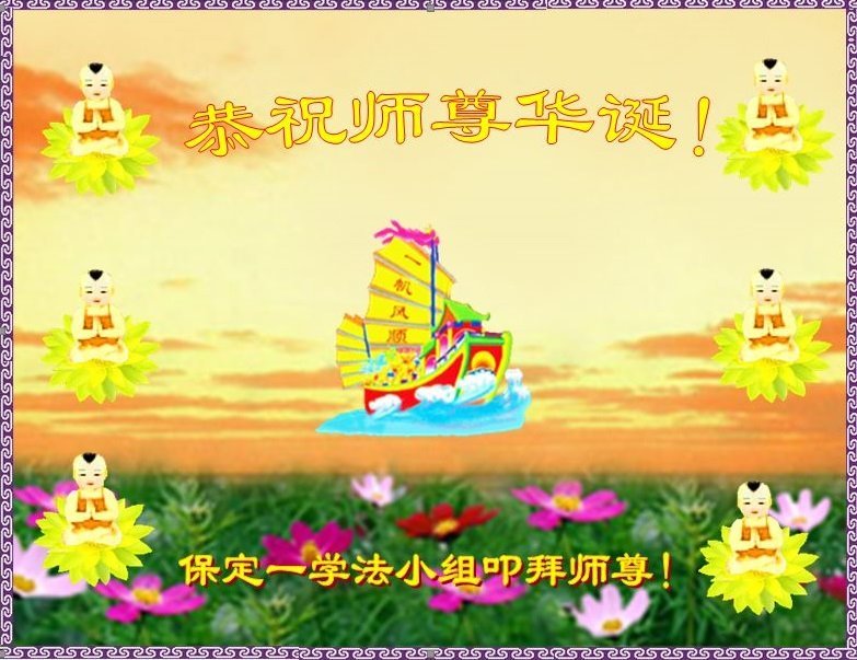 涿州六人一學法小組全體弟子恭祝師父生日快樂!我們學法小組弟子要聽師父的話,學好法、整體提高、整體昇華,完成使命,兌現誓約,整體跟師父回家。
