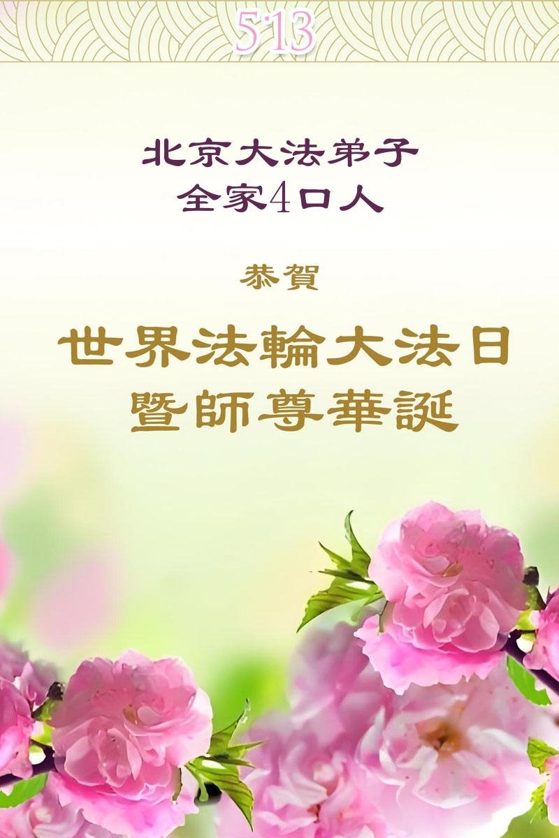 北京大法弟子及全家4口人,恭祝慈悲偉大的師尊生日快樂!
