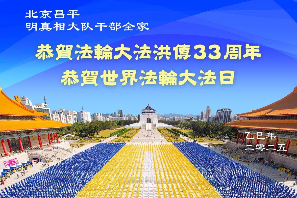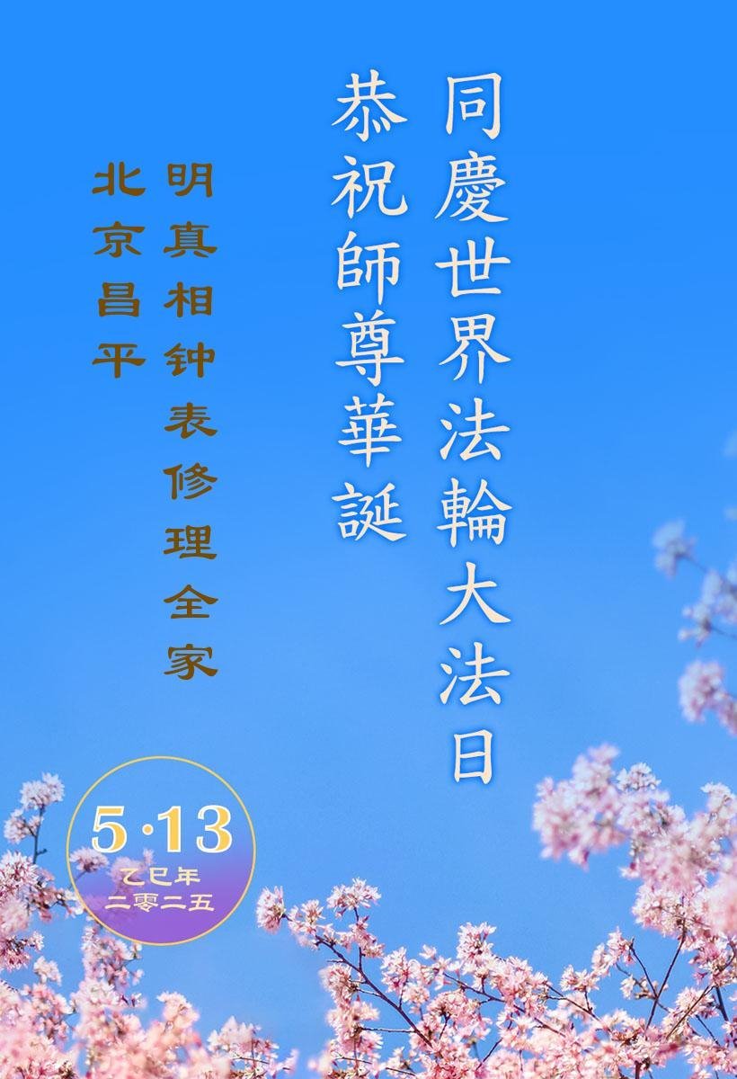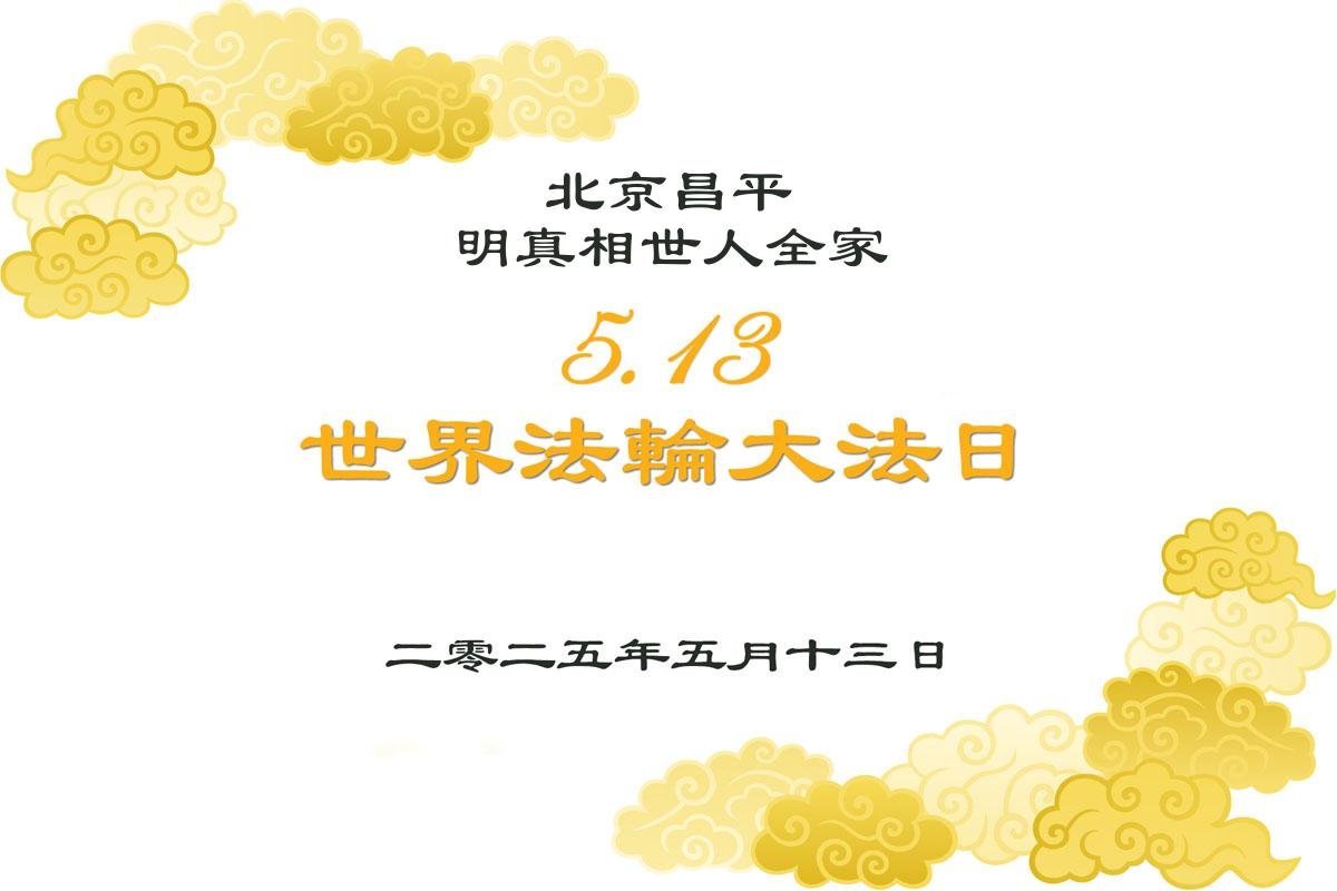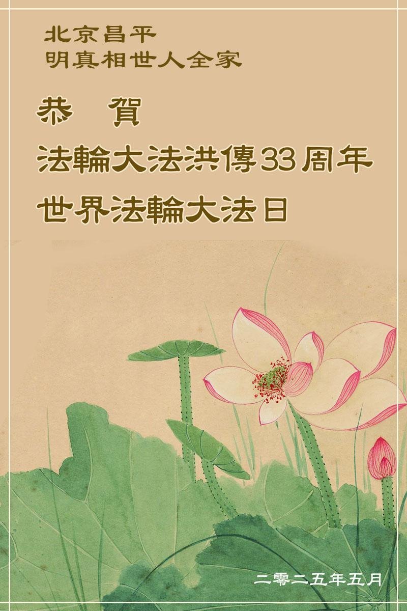 北京昌平明真相世人全家5口人,恭祝李洪志大師,生日快樂!