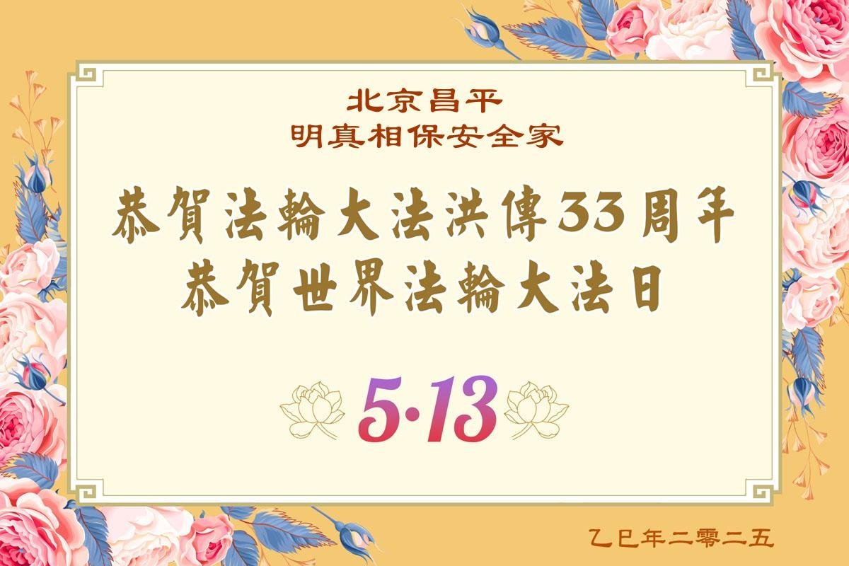 北京昌平明真相保安全家9口,恭祝李洪志大師生日快樂!開開心心!