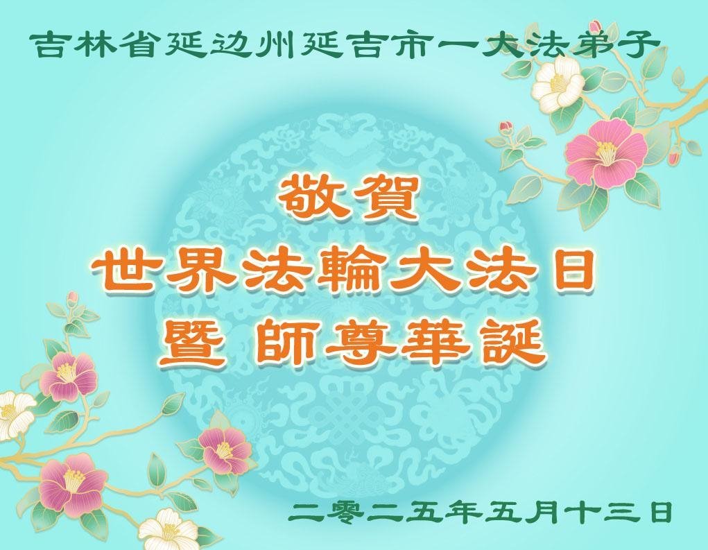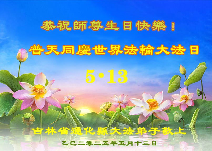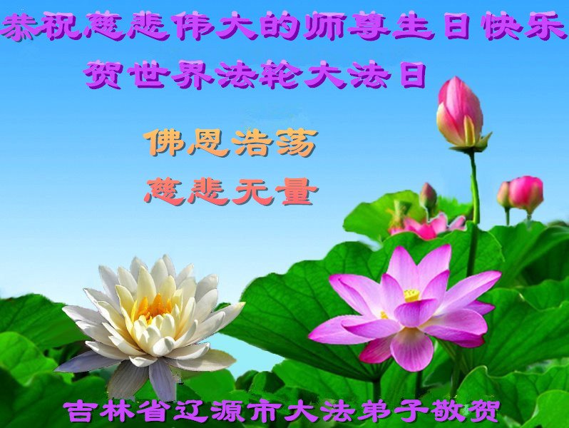 我是吉林通化大法弟子,在師父的保護下,走過得法29年的美好時光,現在雖然有病業干擾,請師父放心,一定堅修大法,不辱使命,多救人,排除干擾,隨師父圓滿返家園,恭祝恩師生日快樂!