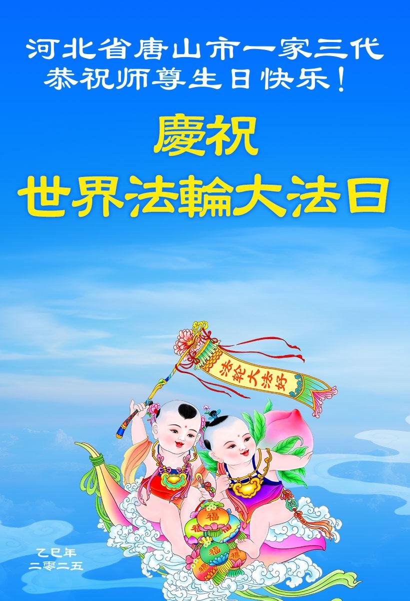 河北省唐山市一家三代同慶世界法輪大法日!
