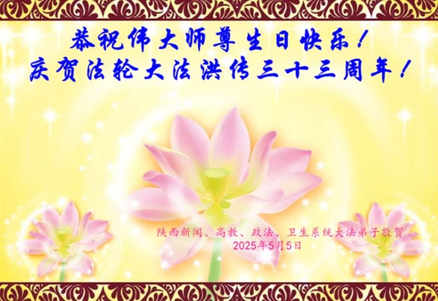 陝西省所有大法弟子恭祝師尊華誕!恭賀大法洪傳三十三週年!